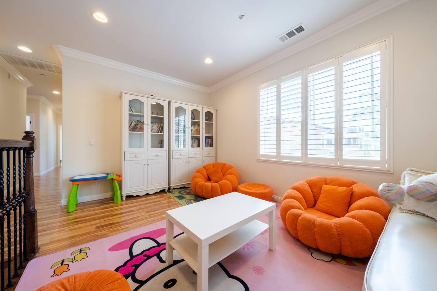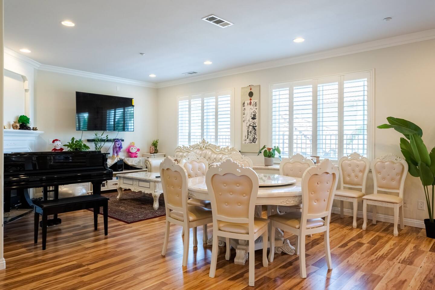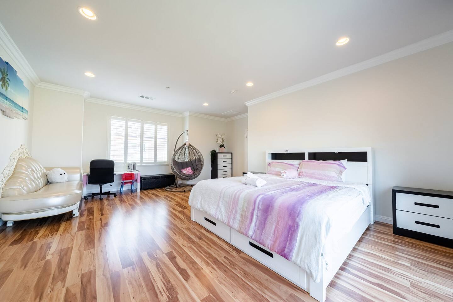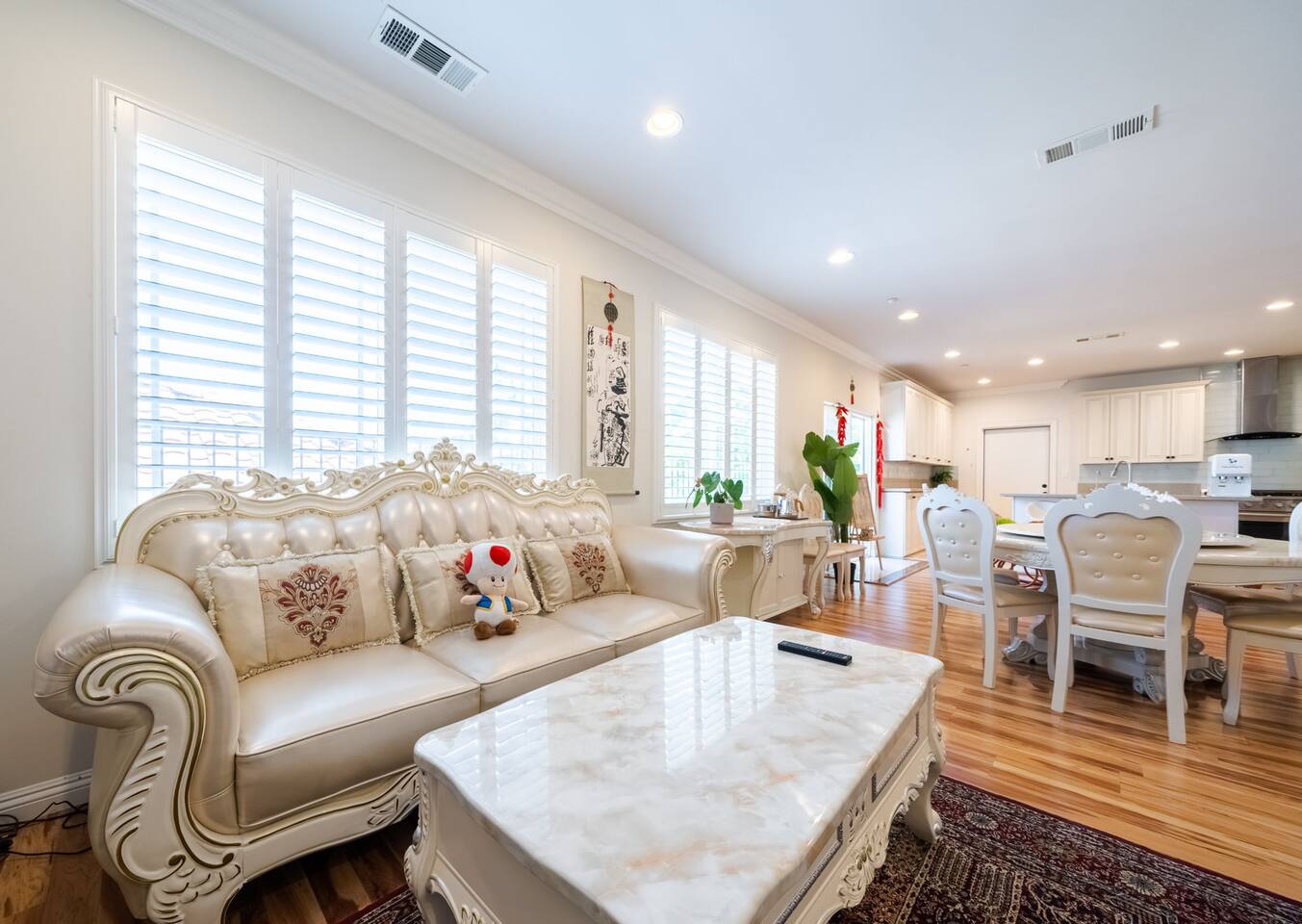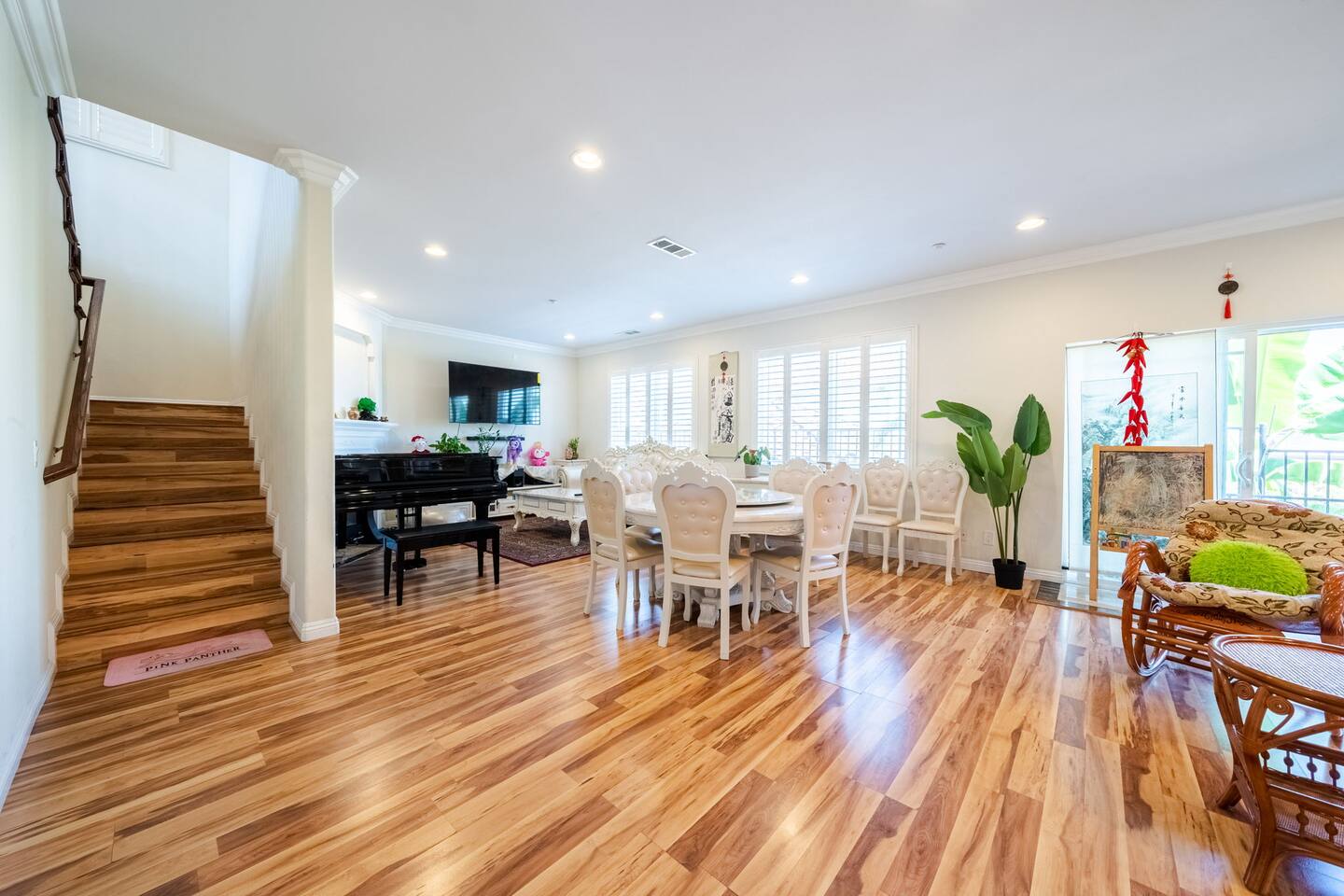 It’s a beautiful 2 story house with a gated back yard and the 4 house complex is gated too! You will have 1 designated parking spot next to the house, and the 2 car garage for you to use. And plenty of street parking if you have more than 2 cars. The house has 6 bedrooms and 3 and half bathrooms and offers plenty of sleep arrangement. It’s perfect for big family, student groups, and church groups to stay. The kitchen is fully stocked. Free washer and dryers inside the garage.