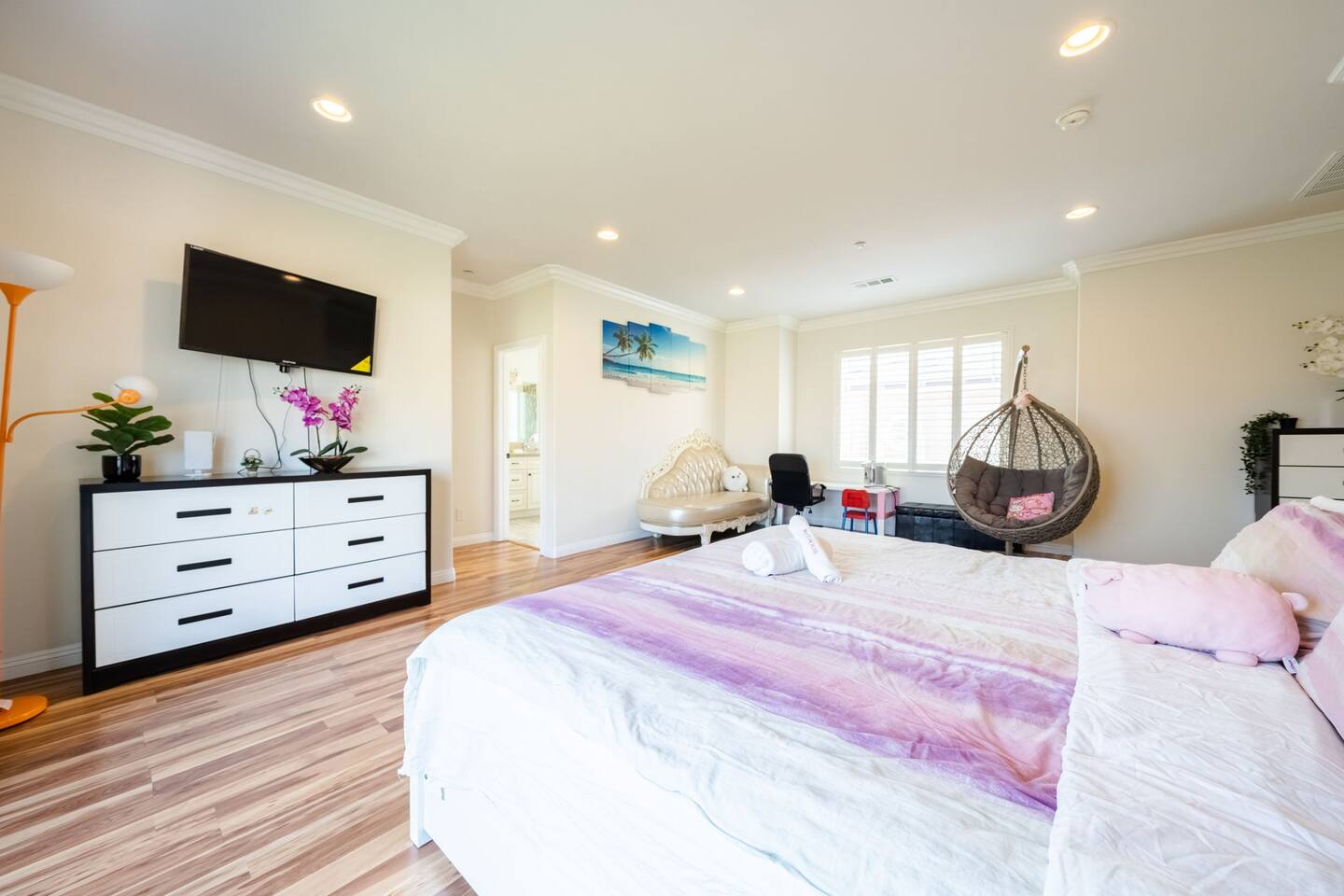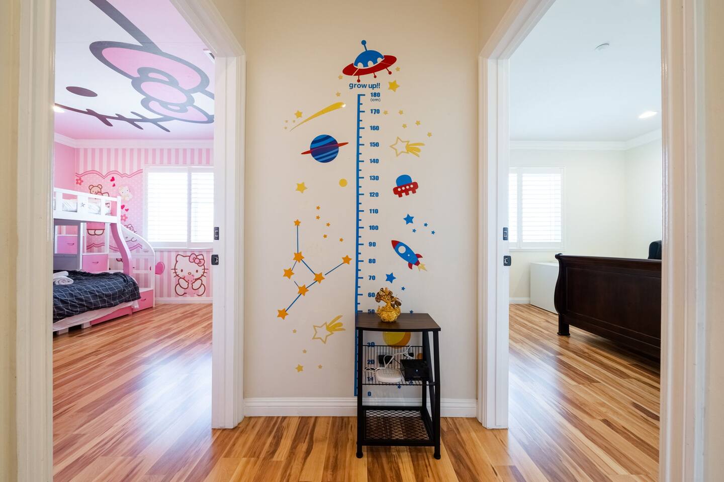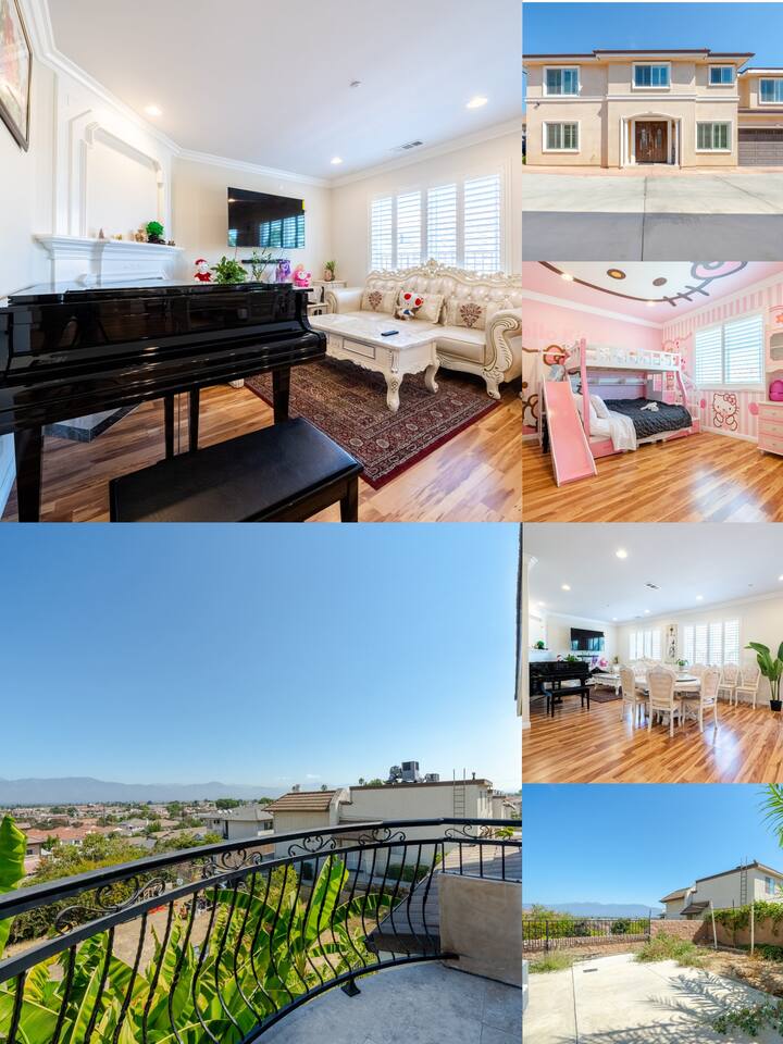 Your family will be close to everything when you stay at this centrally-located place. Whole single family house. Comfortably sleeps 17-19 people. Perfect for large families. Room 1 - Queen bed, Ensuite. Room 2 - Queen bed, Ensuite. Room 3 - Hello kitty Bunkbed Room 4 - 2 Queen beds Room 5 - Queen bed (Room 3, 4, 5 share 1 full bathroom.) Room 6 - King bed and full over full bunkbed, Ensuite. Balcony with mountain views.