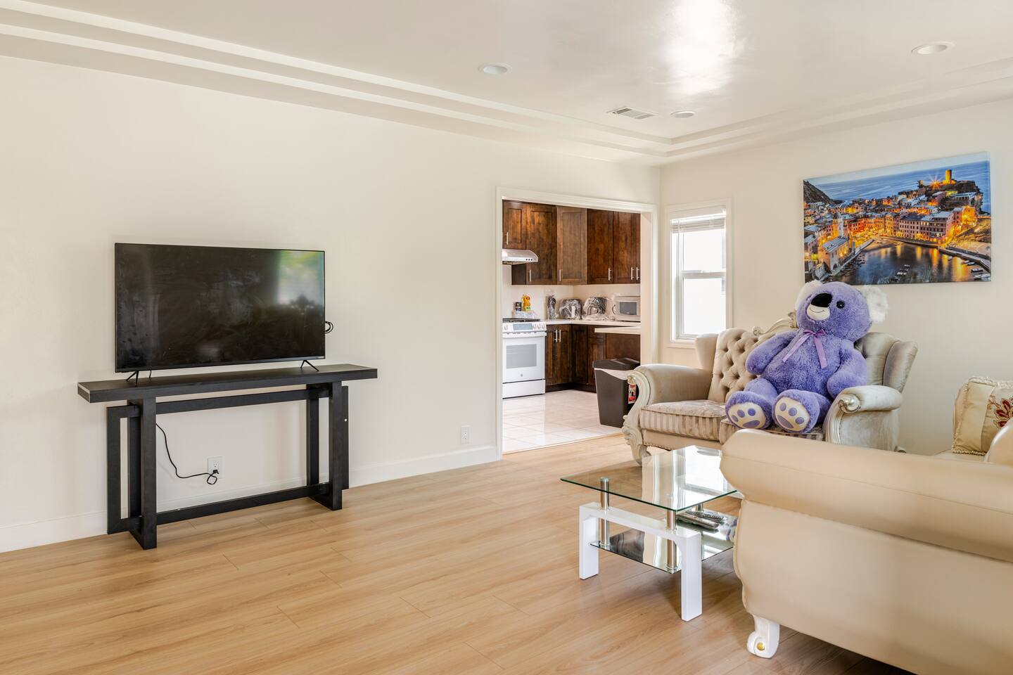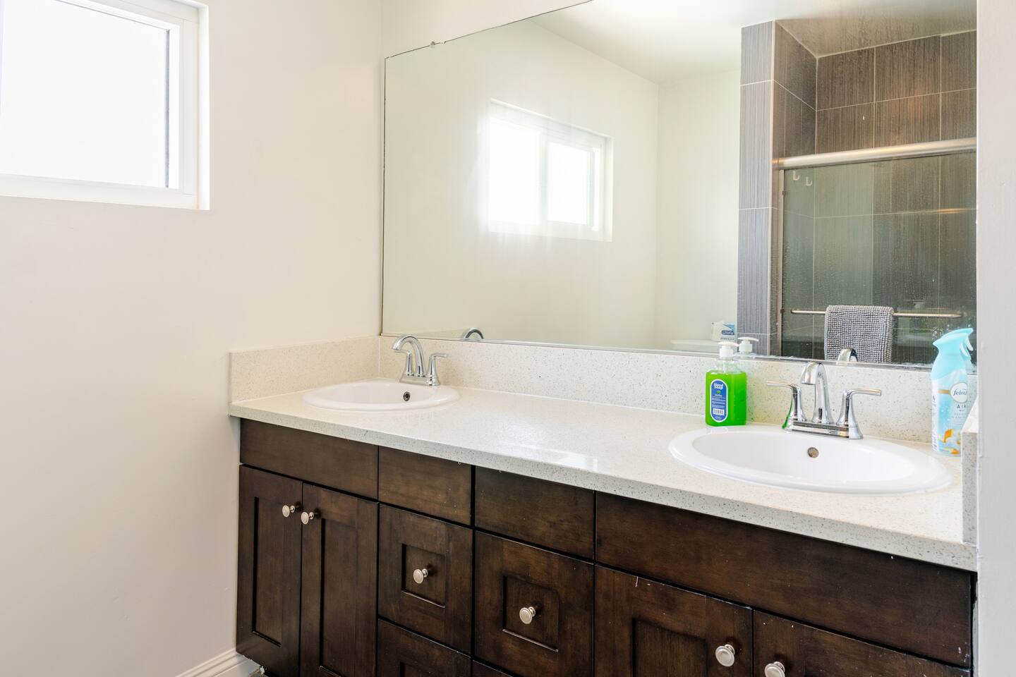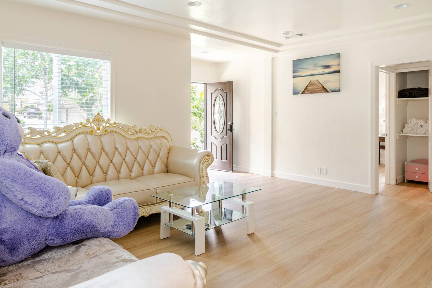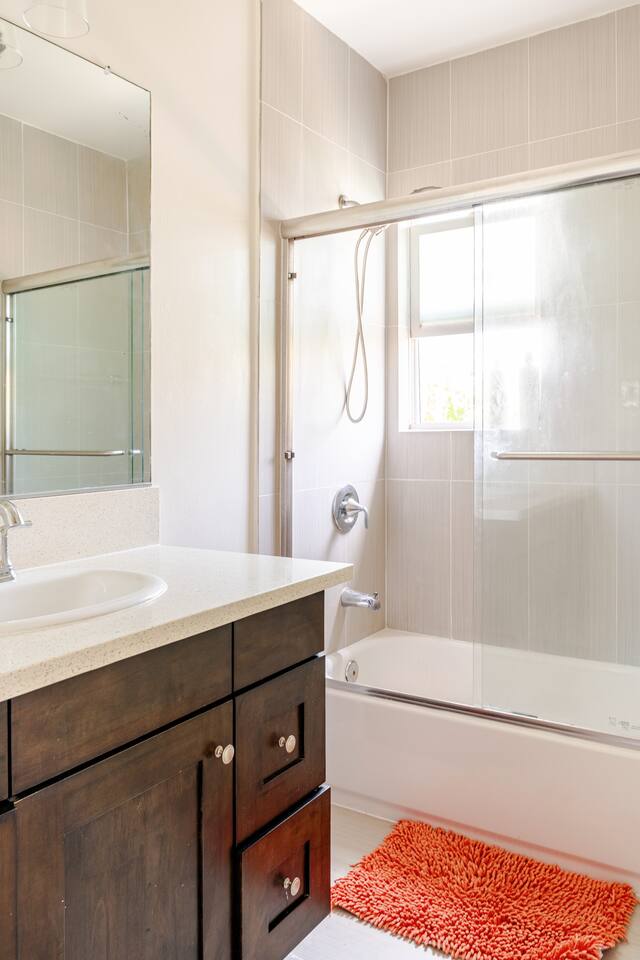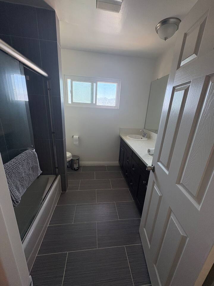 We will provide big bottle soaps and detergent for all guests convenience, please do not remove any bottles. Please do not climb or lean over porch handrails. Children should be under supervision all the time. Partial Backyard is blocked off from guests access, please remain activities inside the part of concrete area. Garage is not open to guests use. Room 3 has a partial wall which is not fully extended to the ceiling. Please use other bedrooms for light sensitive guests. Guests will be provided with a starter pack that includes hotel sized shampoo, soap, one roll of toilet paper for each bathroom, a roll of paper towels, and dishwashing detergent. Please pack other essentials accordingly depending on length of your visit. We also provide limited amount of coffee k-cups, coffee condiments packs and salt & pepper packets. We will not be responsible in any way to guests for temporary interruptions of utilities or services including but not limited to water, gas, electric, phone, cable, internet, etc.